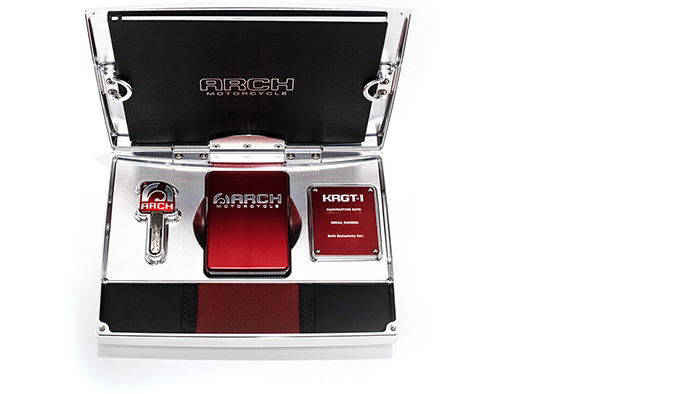 Each KRGT-1 owner receives a personalized owners’ case that includes an identification plate with manufacture date, serial number, owner’s name, a dedicated tool kit, a master ignition key and an upholstered panel that matches the motorcycle seat. A complete owners’ book that celebrates your design selections, build process and studio photography of your ARCH Motorcycle is also incorporated. Other ARCH models include similar owner assets.