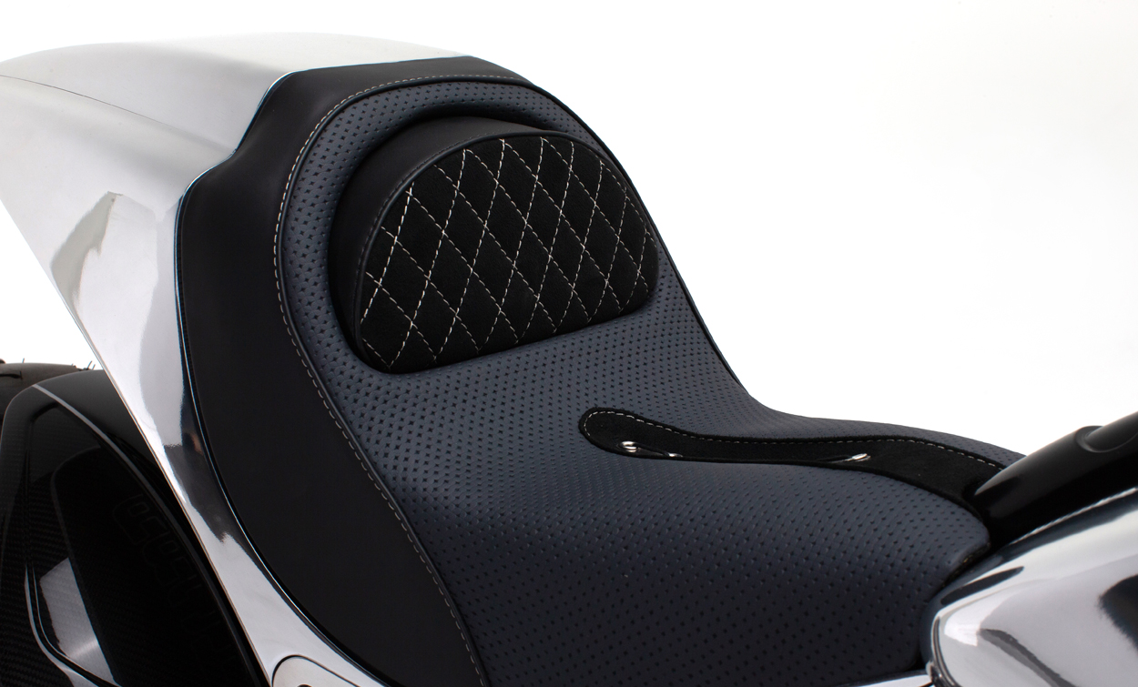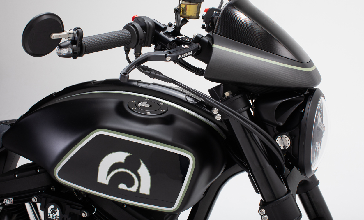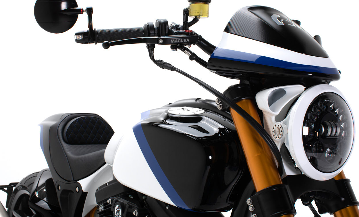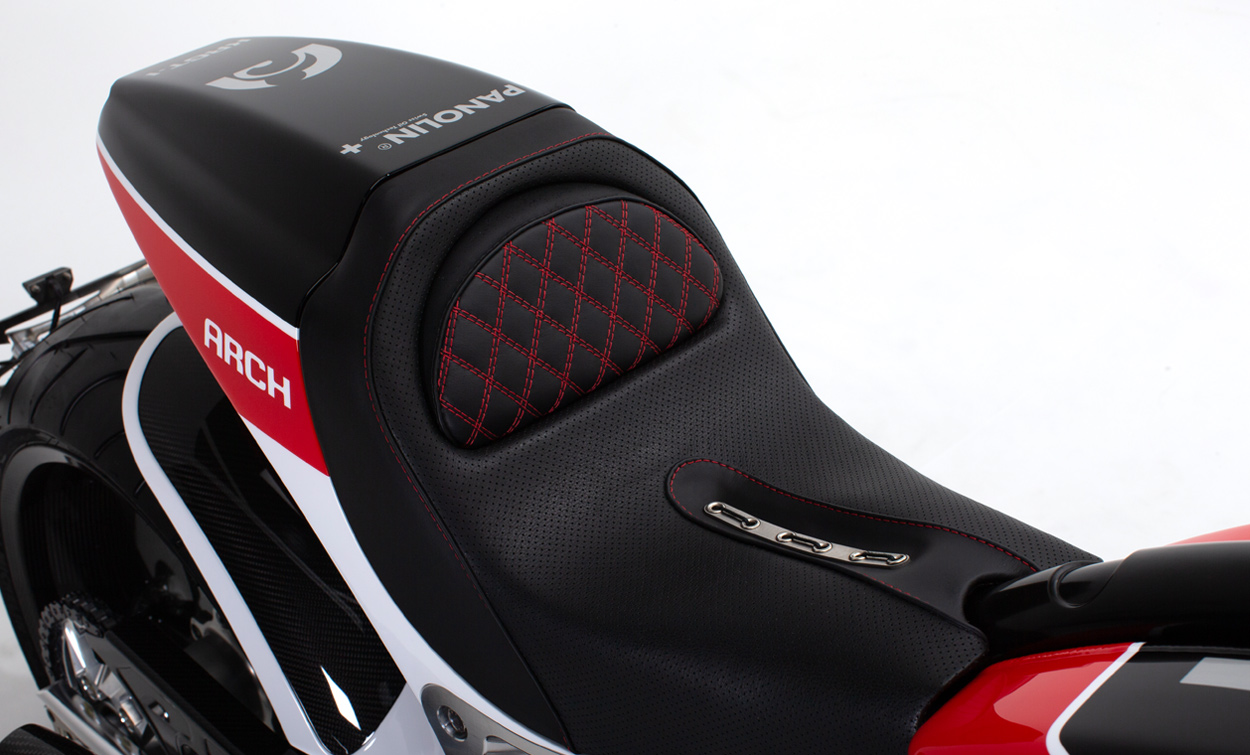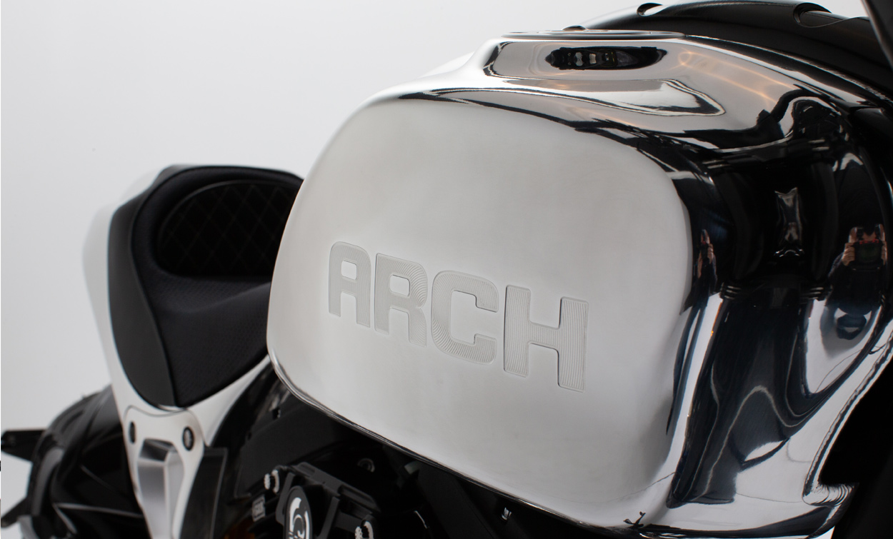 Each KRGT-1 features a bespoke aesthetic and ergonomic package tailoring the fit and finish of the motorcycle to its owner. Tailoring begins with the creation of your aesthetic package followed by an ergonomic fitting. A uniquely shaped seat and ideal placement of foot and hand controls result in an organic connection with the motorcycle. Assembled at ARCH Motorcycle’s Los Angeles facility, each ARCH KRGT-1 is built to order.