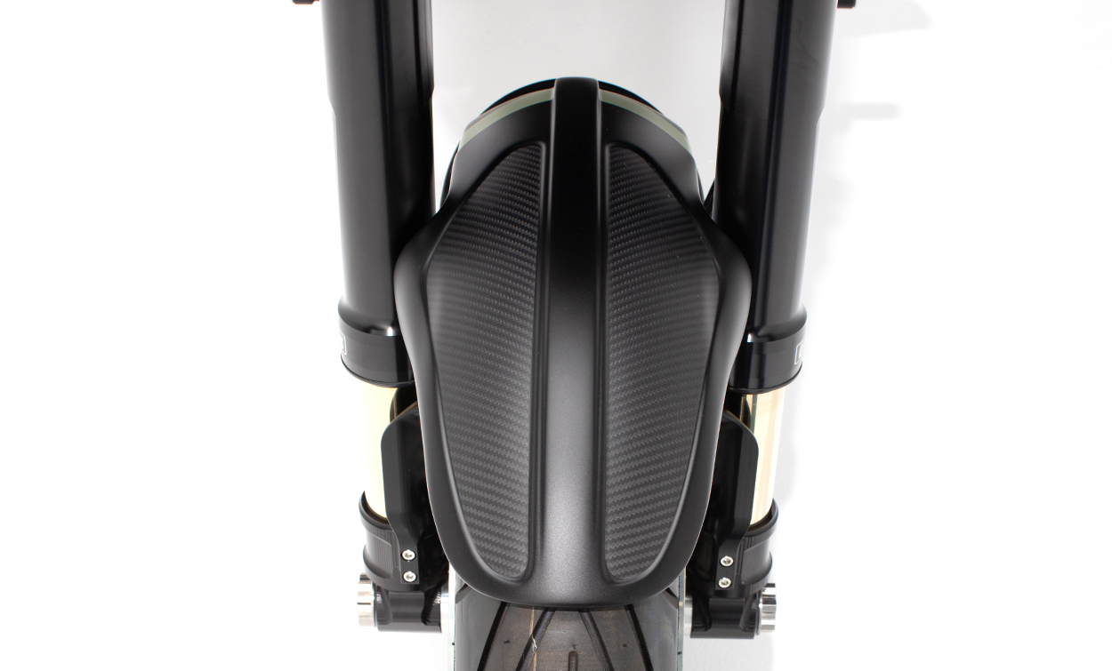 Proprietary front and rear carbon fiber wheels are supplied by Blackstone Tek (BST). Carbon fiber provides a high strength to weight ratio helping to further reduce unsprung mass and enhance ride and handling characteristics. BST 19×3-inch front and 18×8-inch rear carbon fiber wheels are available in either gloss or satin finishes and can be further customized as desired.
