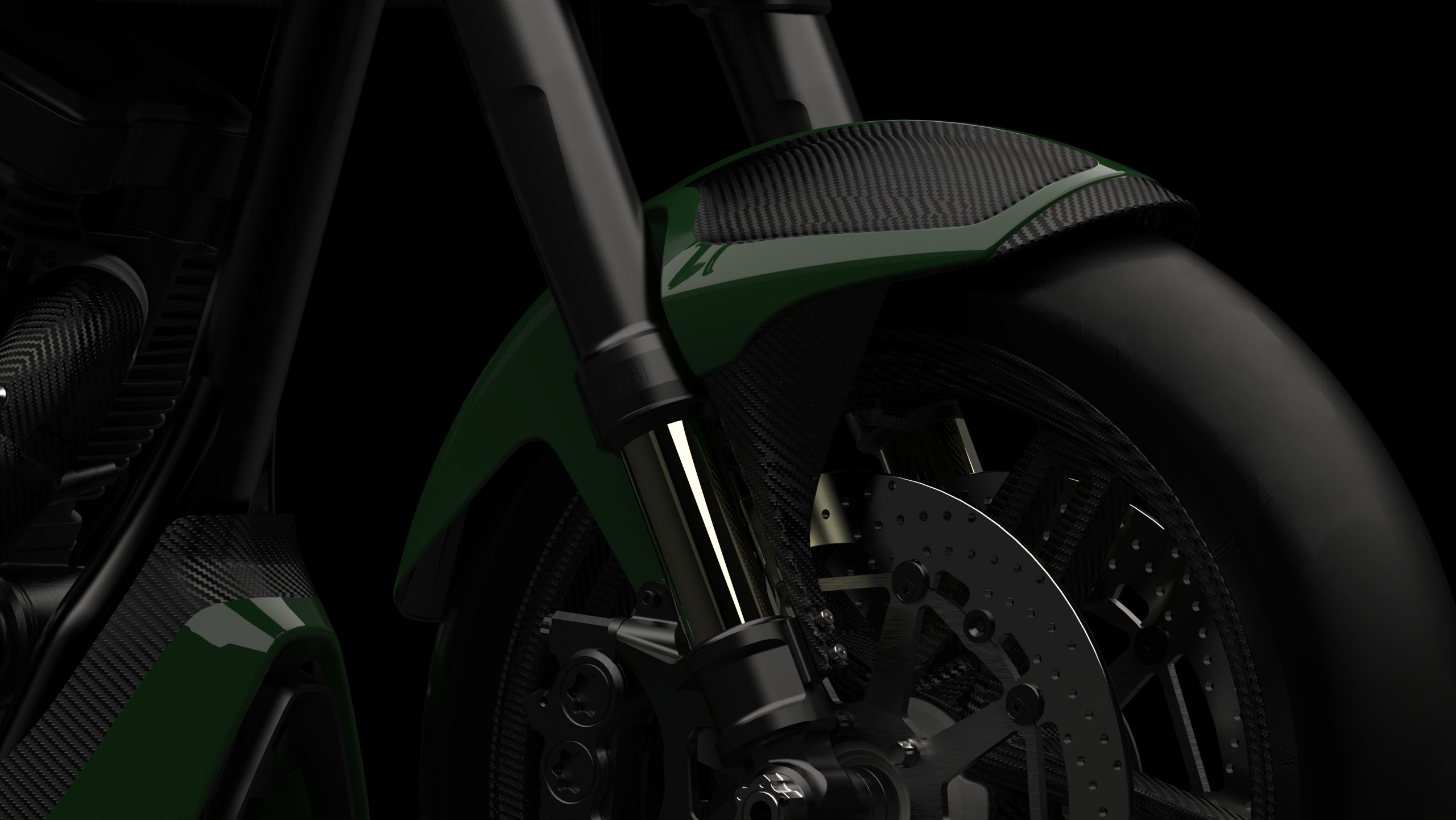 The 1s features the first single-sided swingarm from ARCH Motorcycle. Designed to be both functional and aesthetically appealing, the 1s swingarm follows our simple, elegant and efficient manufacturing philosophy. Functionality is improved via ease of maintenance and the rear carbon fiber wheel is unobstructed for visual appeal. Additionally, the swingarm works in conjunction with the Öhlins rear shock absorber to push the unsprung mass of the wheel and tire back to the road for a more responsive feel.